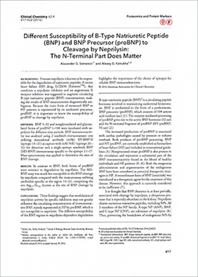 A recently introduced heart failure drug Entresto™ (LCZ696) has been suggested to increase the apparent amount of circulating BNP as the drug acts as an inhibitor of neprilysin, a known protease degrading natriuretic peptides. As a consequence, use of Entresto could render the results of BNP measurements diagnostically ambiguous. In this article published in April in Clinical Chemistry, our researchers have studied this question by investigating how different forms of BNP and proBNP are degraded by neprilysin in vitro. This is important because the main form of BNP measured in the blood of heart failure patients is in fact the uncleaved precursor proBNP. On the other hand, commercially available assays utilize different antibody combinations and usage of Entresto may have totally different effects on the assays depending on what epitopes the antibodies used in the assays recognize.